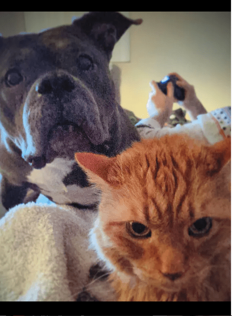 Mom to Molly (Staffordshire Bull Terrier/Bulldog Mix) and Kipling (Orange Tabby/Maine Coon Mix)